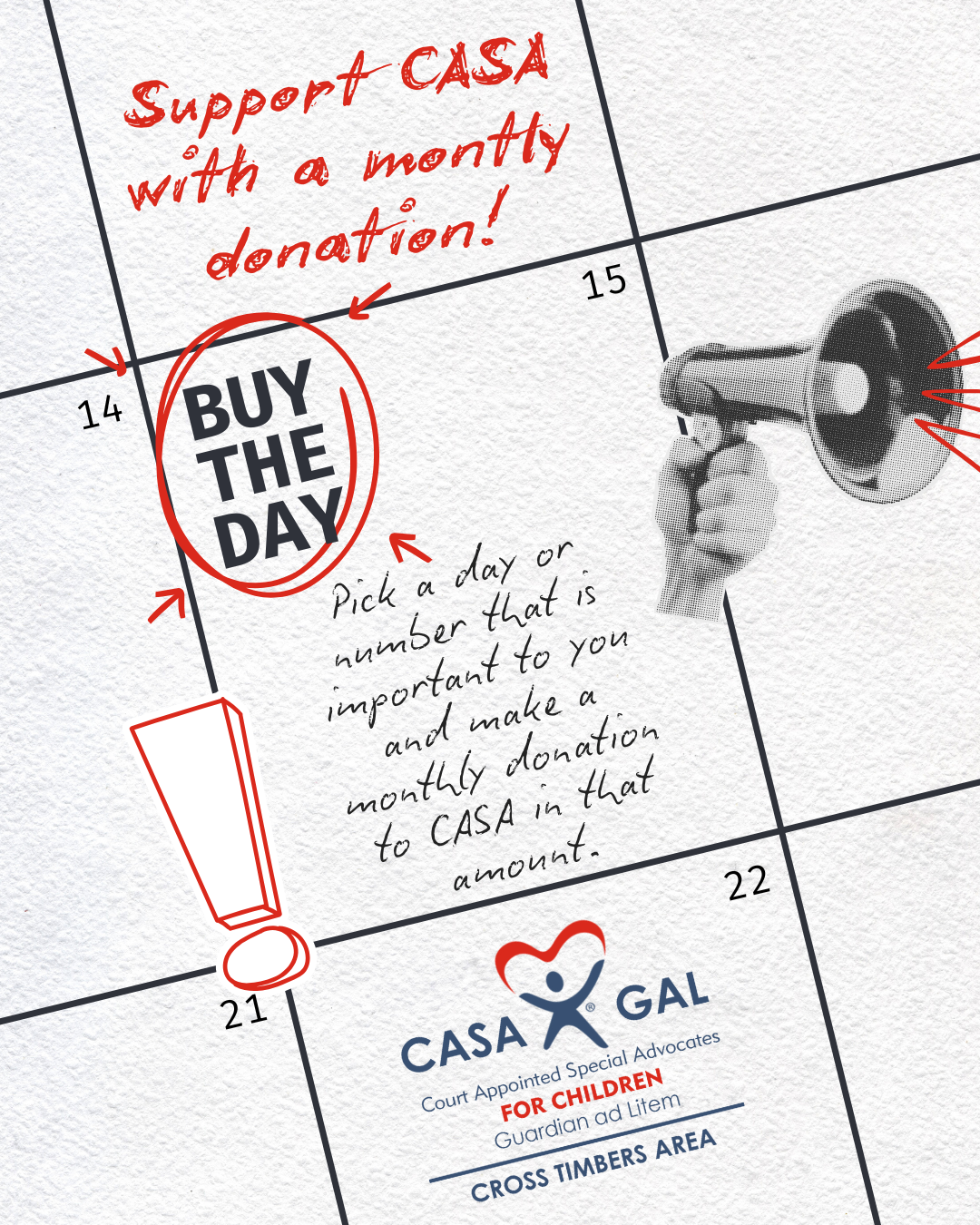 CASA for the Cross Timbers Area is a 501(c)3 tax-exempt nonprofit organization as defined in the Internal Revenue Code.